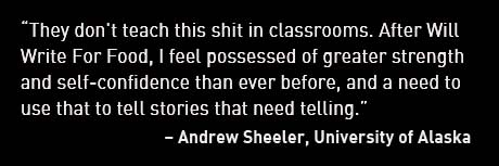 You’ll take over the nation’s second-largest homeless newspaper and assemble an entire 24-page issue in 36 hours – starting with a tasty dinner in the shelter on a Saturday night and ending with cold leftovers in the wee hours of a Monday morning. It’s called Will Write for Food, and 2015 will mark our seventh twisted year.